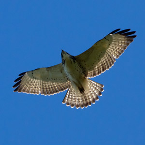 Plusieurs centaines de milliers de Petites Buses (Buteo platypterus) survolent chaque automne la zone du canal de Panama.Photographie : Manjith Kainickara / Wikimedia Commons