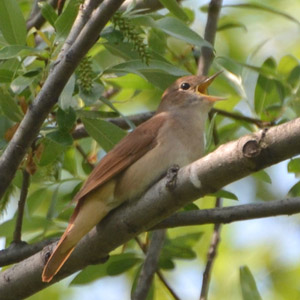 L’algorithme de Dan Stowell et Mark D. Plumbley pourrait a priori reconnaître facilement le chant d’un Rossignol philomèle (Luscinia megarhynchos).Photographie : Noel Reynolds / Wikimedia Commons