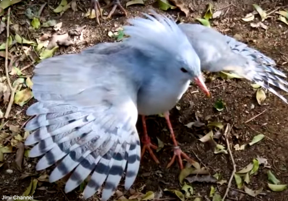 La posture d’intimidation du Kagou huppé (Rhynochetos jubatus).