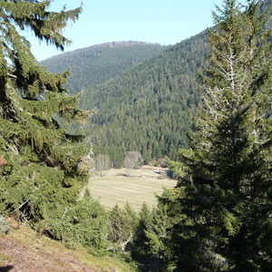 The Hautes-Vosges are the southern part of the Vosges massif, eastern France: they are characterized by a succession of « balloons », rounded reliefs culminating at 1,424 meters of altitude at the Grand Ballon, included in the Natural Park Of the Ballons des Vosges. Despite the modest altitude, the climate of this area is harsh and unstable. The slopes are covered with vast forests of spruce, pine, fir and beech, while grassy heaths or « chaumes », dotted with a few trees and shrubs, extend on certain summits.