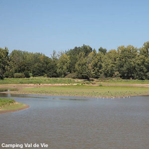 Vue du lac de Maché-Apremont (Vendée) : il devient très intéressant à la fin de l’été, lorsque le niveau d’eau baisse.Photographie : Camping de la Vie