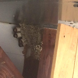 Planche installée sous un nid occupé d’Hirondelles rustiques (Hirundo rustica) dans l’Hérault.