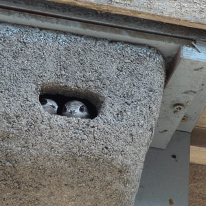 Jeunes Martinets noirs (Apus apus) dans leur nichoir. Cette espèce revenant tardivement d’Afrique, on peut encore installer les nichoirs en avril.Photographie : Tonio Schaub / Wikimedia Commons