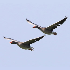 Oies cendrées (Anser anser) dans la réserve naturelle de Saint-Denis du Payré (Vendée) : chez cette espèce, 15 % des mâles seraient strictement homosexuels.