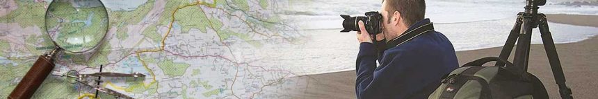 Une sélection d'équipements utiles (sacs, harnais, courroies, tentes, cartes) pour randonner et observer les oiseaux.