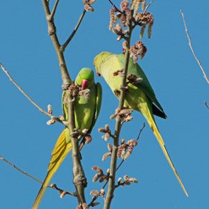Perruche à collier (Psittacula krameri) femelle à Champigny-sur-Marne (Val-de-Marne) le 29 décembre 2017.