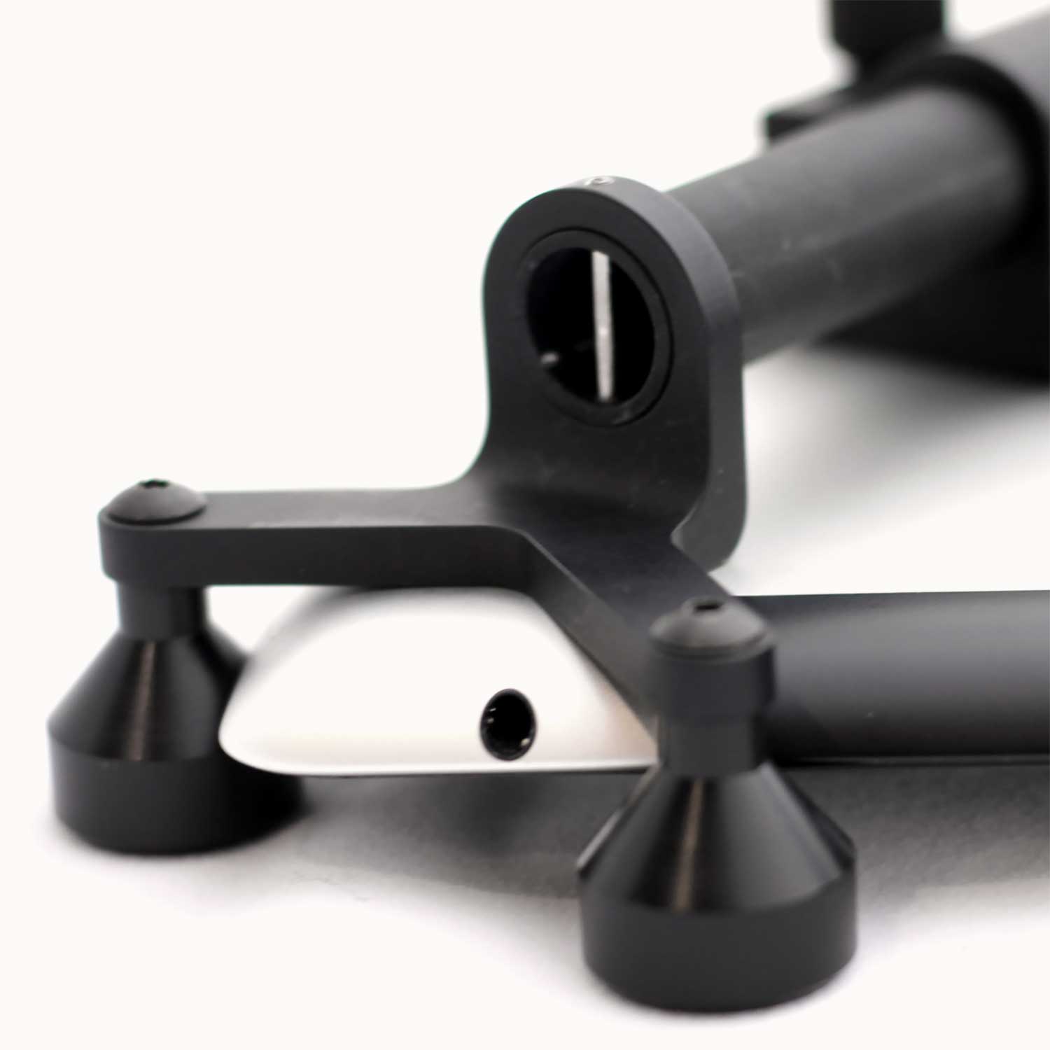 Cet adaptateur est pratique et facile à utiliser. Il est composé d’une coque en aluminium anodisé, d’une bague de compression (quatre bagues sont fournies pour s’adapter aux diamètres d’oculaires entre 40 et 60 mm, mais il existe aussi des bagues pour les oculaires dont le diamètre est compris entre 23 et 40 mm) et d’une barre télescopique munie de « doigts » à ses extrémités pour prendre la tablette « en étau » : la connexion est ainsi solide. Il est simple à retirer.