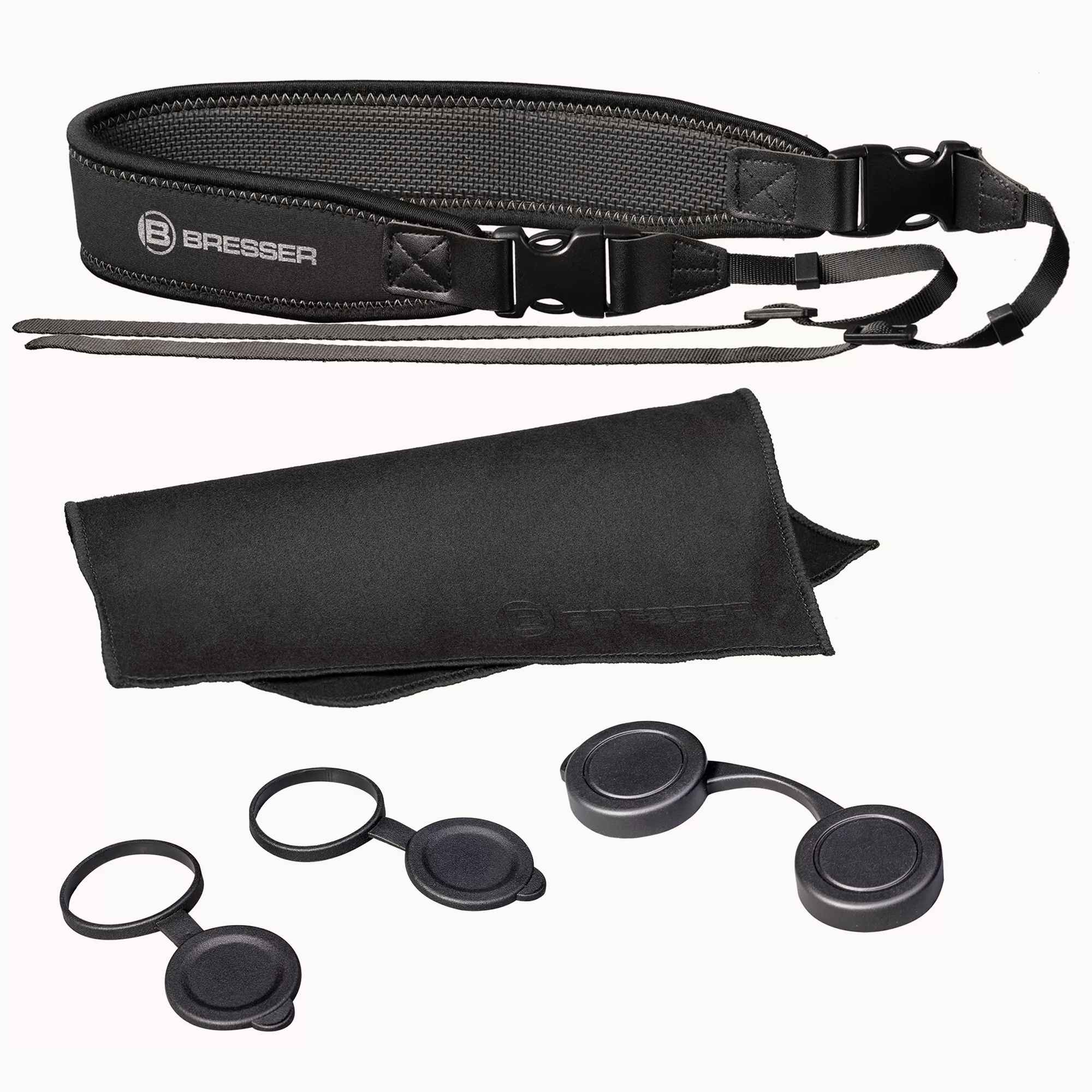 Les Pirsch 8×42 ED sont équipées de capuchons d’objectifs et d’oculaires, d’une sangle de transport large et très confortable et sont livrées avec une sacoche de transport en nylon avec bandoulière et un grand chiffon de nettoyage pour les optiques.