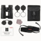 Elles sont livrées avec des capuchons protecteurs pour objectifs et oculaires, une sangle de transport, un étui, un chiffon de nettoyage et un mode d’emploi.