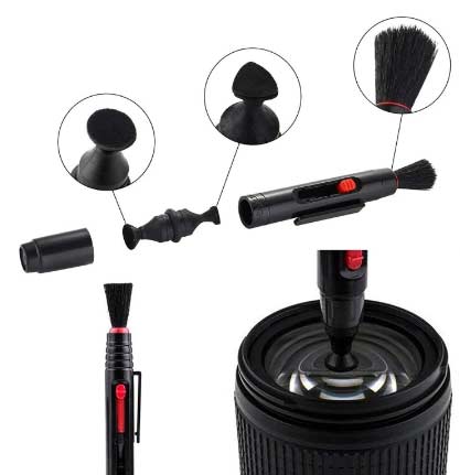 Ce kit pratique, qui peut servir à nettoyer tous les types d’équipements optiques, photographiques et électroniques, contient un souffleur, un pinceau souple, un stylo double face, un liquide de nettoyage adapté et un chiffon doux.