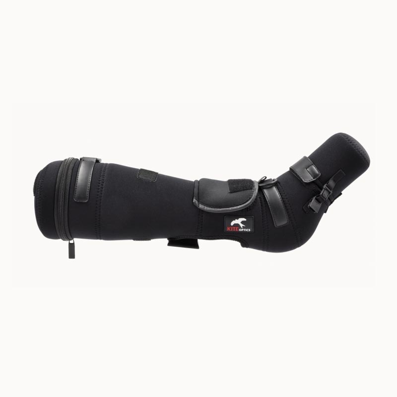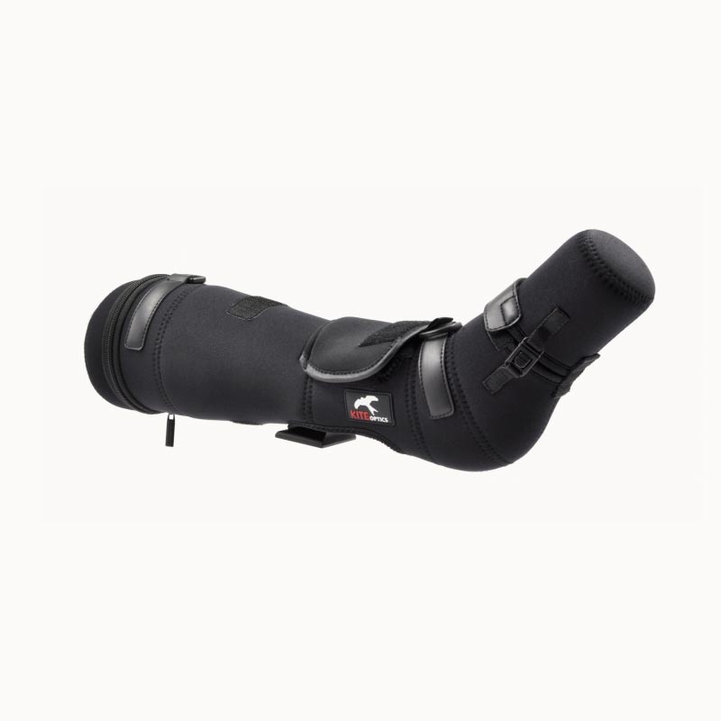 Lors que l’on utilise une longue-vue, elle est soumise aux intempéries et aux particules, et il est donc important de la protéger tout en pouvant continuer à observer : c’est pour cette raison que la société Kite Optics, connue pour ses produits bien adaptés aux besoins des ornithologues, a été l’une des premières à proposer des étuis permanents. Elle possède donc une bonne expérience dans ce domaine. Grâce à leurs ouvertures (au niveau de l’objectif, de la molette de mise au point, de l’oculaire et du sabot), ils peuvent être laissés sur place. Ils sont solides et pratiques. L’étui Skua pour les longues-vues Swarovski 60, 65 et 80 AT, ATS ou ATM, HD ou non, est bien adapté à ces modèles et à leurs oculaires.