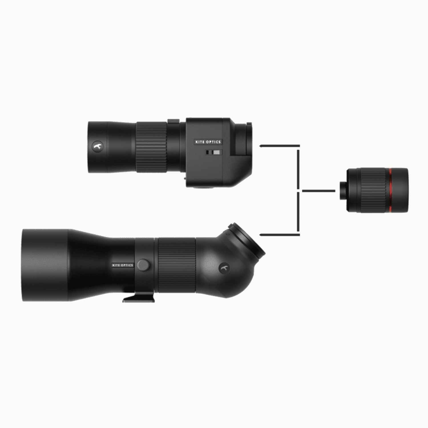 L’oculaire interchangeable 17x-35x de l’APC 60 ED peut aussi être utilisé avec la longue-vue KSP 80 HD : ainsi, si vous possédez déjà cette longue-vue haut de gamme et que vous recherchez un modèle complémentaire compact et stabilisé pour vos randonnées, vous pouvez acheter uniquement le corps de l’APC 60 ED. La flexibilité fonctionne dans les deux sens : si vous possédez une APC 60 ED, vous pouvez facilement passer à la KSP 80 HD en utilisant le même oculaire. Ce design modulaire, qui rappelle celui des produits Swarovski, est un vrai avantage.