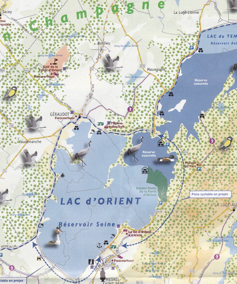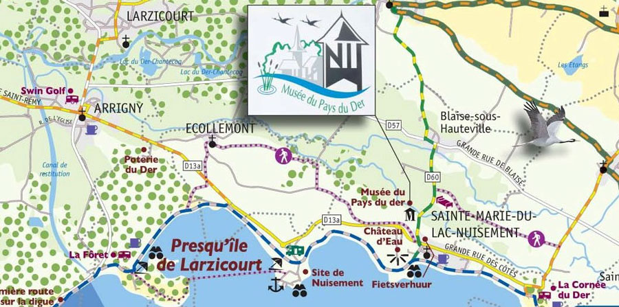 Carte du pays des Grues cendrées, le lac du Der et les lacs aubois