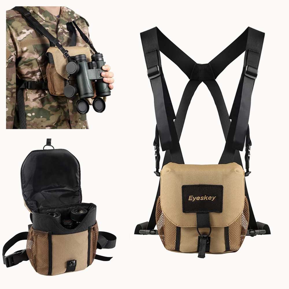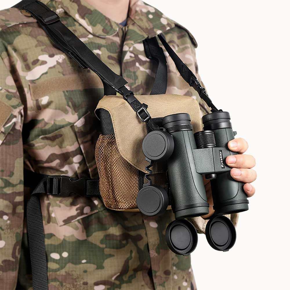 Cet accessoire pratique est composée d’un harnais dorsal muni de sangles réglables confortables, permettant de fixer solidement une paire de jumelles ou un appareil photo, et d’un sac de toile solide, rembourré et équipé de poches latérales.
