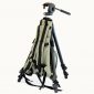 Deux courroies se placent respectivement autour de la tête du trépied et autour de la colonne centrale (assurez-vous que vous pourrez facilement accéder à la molette de réglage de la hauteur de cette colonne). Fixez l’autre extrémité du Mulepack aux deux pieds du trépied sous le premier levier de blocage. Placez la bande Velcro autour des pieds.