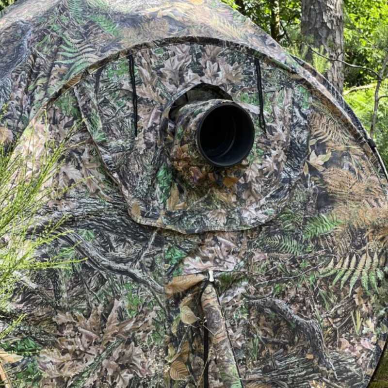 Fabriquée en polyester 150D « Oxford », elle est étanche et recouverte d’une induction noire, ce qui assure une obscurité parfaite à l’intérieur, une condition essentielle pour rester invisible aux yeux de la faune.