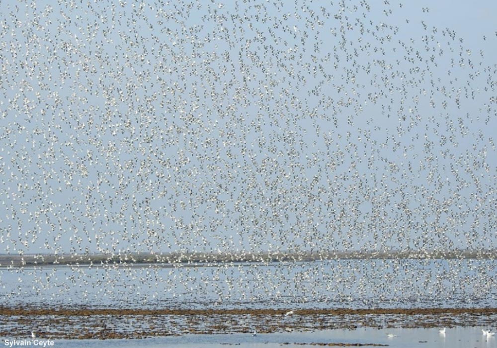 Le logiciel CountEm pourrait compter en cinq minutes et de façon fiable les milliers de Bécasseaux variables (Calidris alpina) visibles sur cette photo prise en octobre 2019 sur la Baisse de 500 Francs en Camargue (Bouches-du-Rhône).