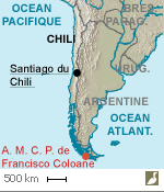 Situation de l’Aire Marine et Côtière Protégée Francisco Coloane (Chili). |