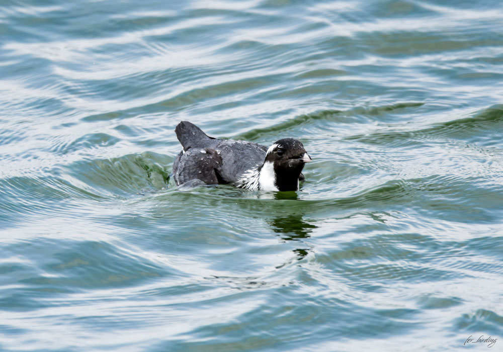 Guillemot à cou blanc (Synthliboramphus antiquus) à l’embouchure du fleuve Odiel, en Andalousie (Espagne), le 26 mai 2023 : il s’agissait que la troisième donnée de cette espèce pour le Paléarctique occidental (cliquez sur la photo pour l’agrandir).