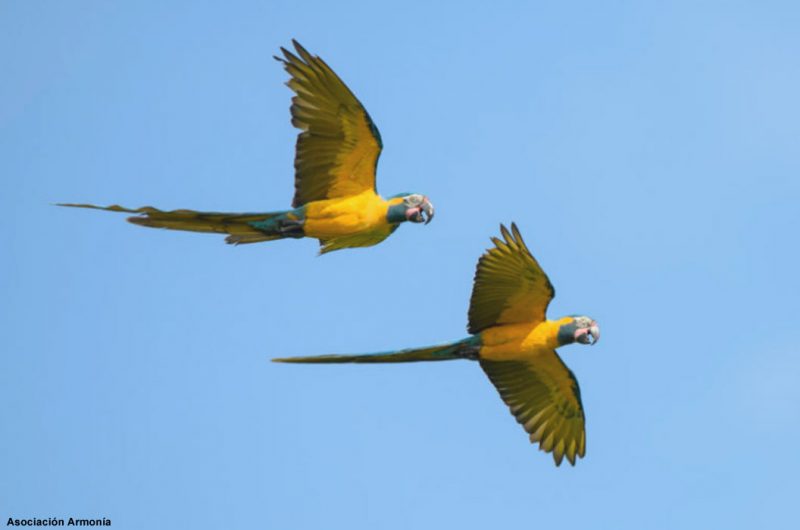 Aras canindés (Ara glaucogularis) en Bolivie.