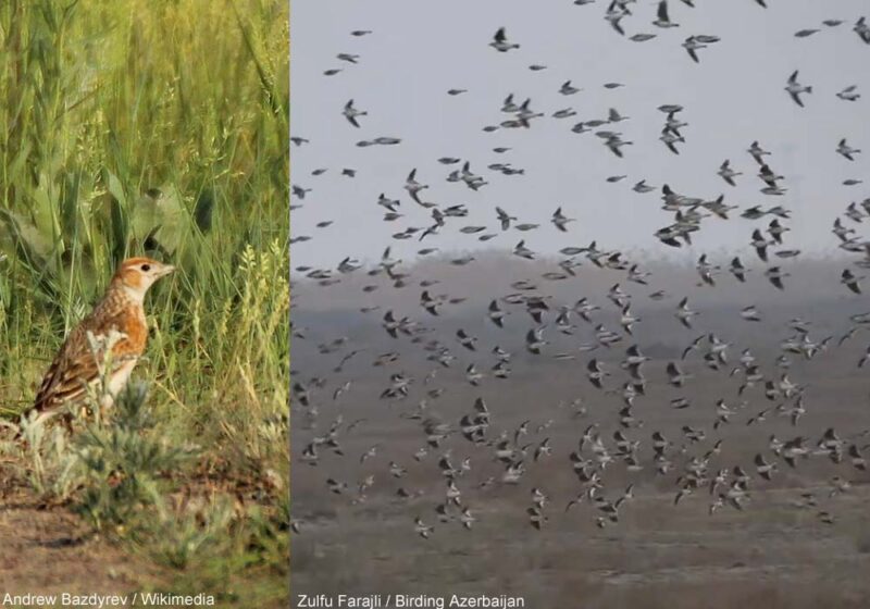 En Azerbaïdjan, l’Alouette leucoptère est une espèce hivernante peu commune, mais dont les effectifs sont variables d’une année sur l’autre, généralement compris entre 100 et 1 000 individus selon BirdLife International. Sur la page Facebook de l’association Birding Azerbaijan, qui organise des séjours et mène des études ornithologiques sur le terrain, Zulfu Farajli a publié une vidéo filmée le 8 février 2026 dans le parc national de Shirvan (ou Chirvan), situé non loin de la rive occidentale de la mer Caspienne (lire Observer les oiseaux en Azerbaïdjan), où l’on voit une impressionnante troupe de plusieurs centaines (au moins 300) Alouettes leucoptères. Parmi les commentaires de cette vidéo, un observateur a indiqué que des milliers d’individus étaient également présents cet hiver le long de la côte orientale de la mer Caspienne (Kazakhstan), ce qui serait inhabituel, tandis qu’un autre a précisé qu’un grand nombre d’oiseaux avaient été vus en migration en novembre 2025 en Azerbaïdjan, confirmant un probable afflux hivernal dans le bassin caspien.