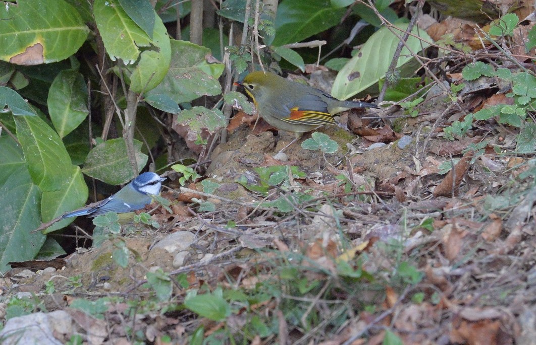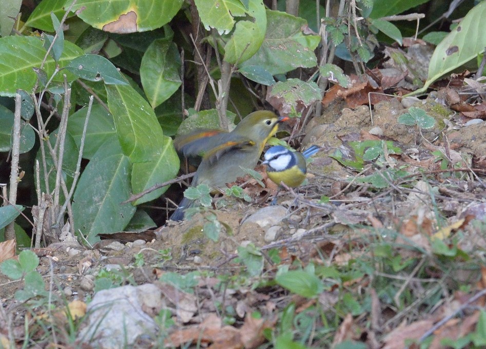 Léiothrix jaune et Mésange bleue