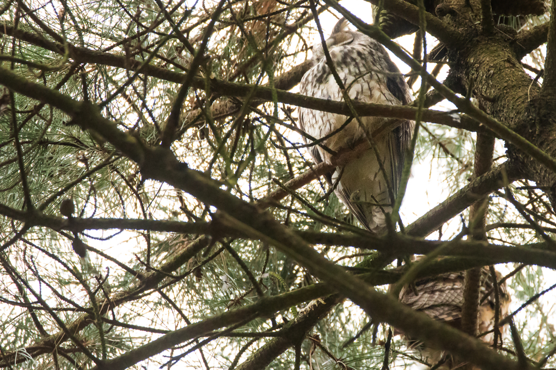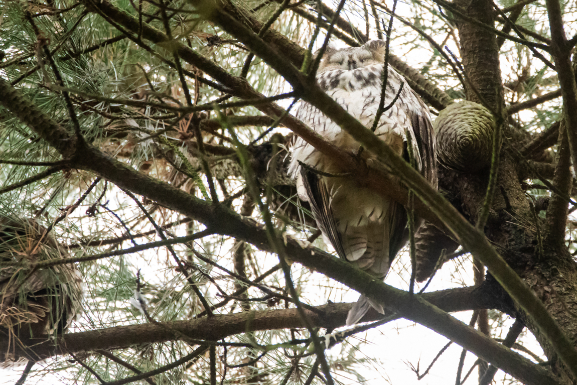 Photo prise le 27/12/2023. Il se reposait dans un grand sapin avec deux congénères.