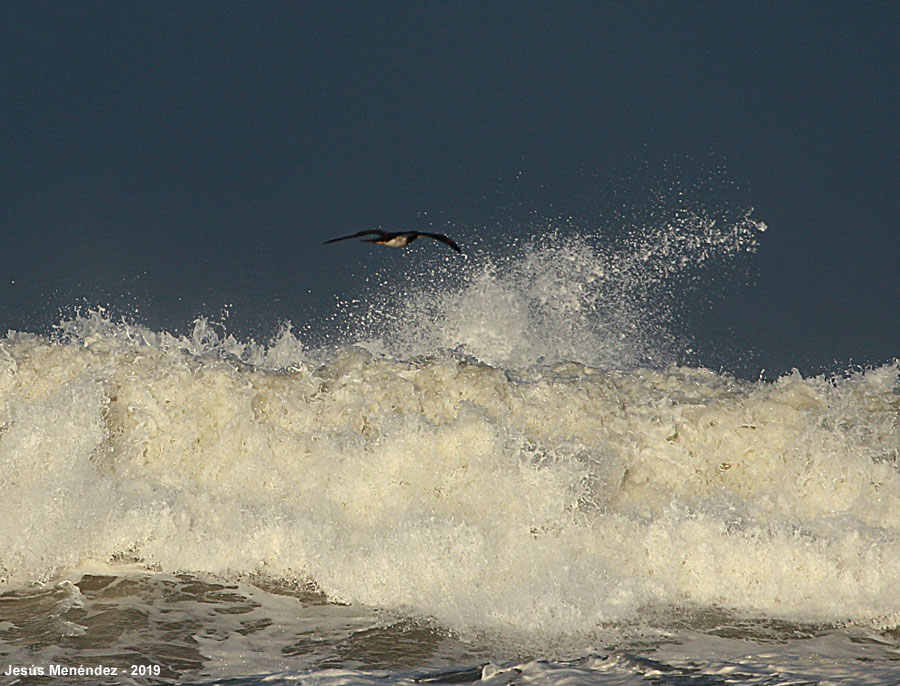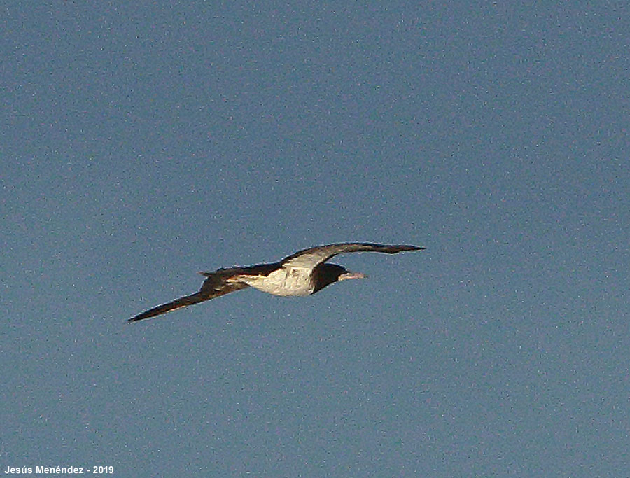 Photo prise le 06/11/2019 par Jesús Menéndez. Alors qu'il était venu entre Capbreton et Tarnos pour observer les nombreux Océanites culblanc (Oceanodroma leucorhoa) poussés sur les côtes de Nouvelle-Aquitaine après le passage de la tempête Amélie (lire Les tempêtes et les arrivées d'Océanites culblanc sur les côtes), Jesús Menéndez a observé et photographié un Fou brun. Cette donnée fait suite à la série d'observations de Fous bruns durant l'été 2019 dans la Manche (lire Trois Fous bruns dans les eaux françaises et anglaises durant l'été 2019).