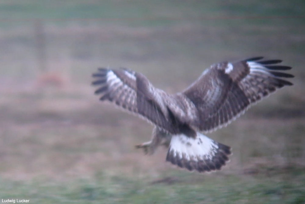 Oiseau de première année filmé par Ludwig Lucker en 2011. Il a hiverné dans le secteur. Lire Comment distinguer les Buses pattue et variable ?.