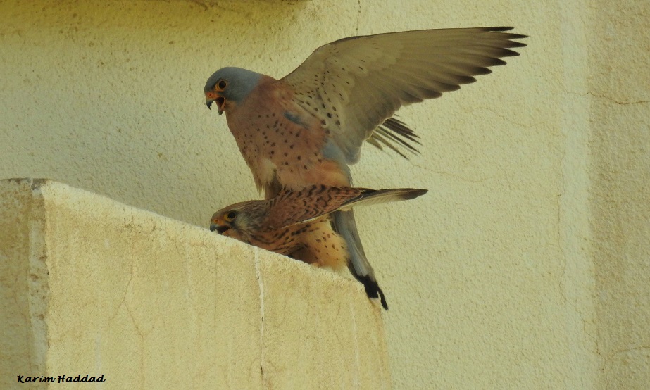 Photo prise le 07/03/2017. Accouplement d'un couple de Faucons crécerellettes. Lire Distinguer les Faucons crécerelle et crécerellette.