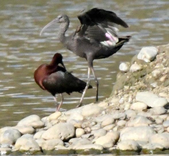 Ibis falcinelles adulte et jeune