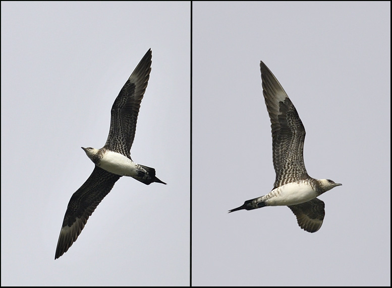 Photo prise le 7/11/2023. Lire Identifier les Labbes à longue queue, parasite et pomarin juvéniles en vol.