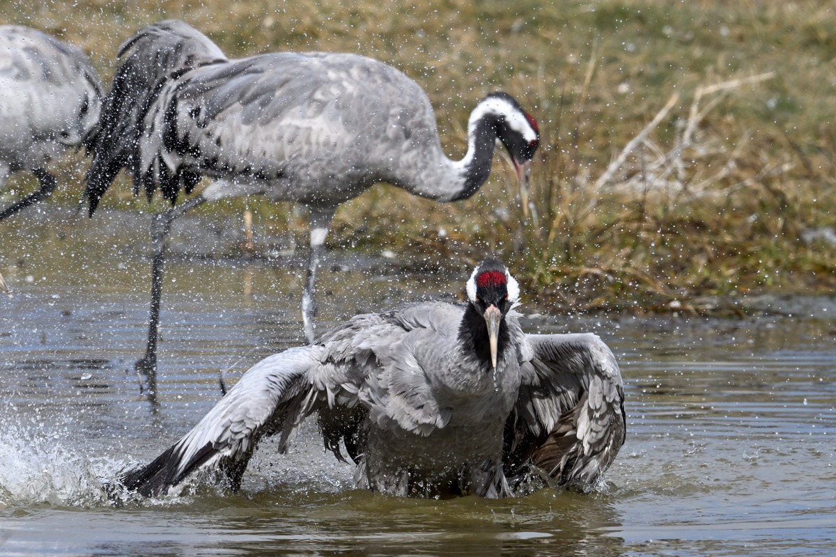 Grue cendrée au bain