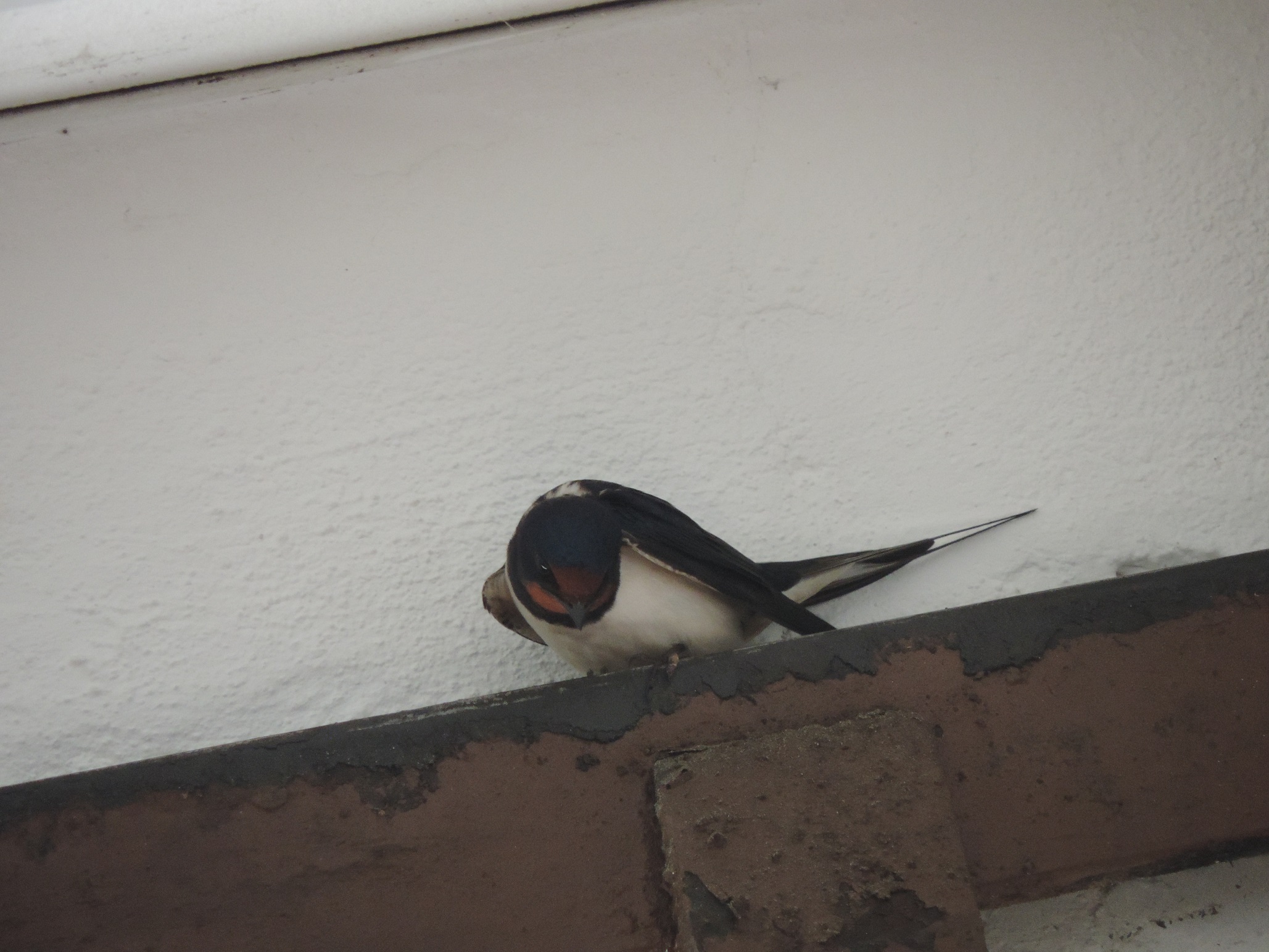 Photo prise le 25/04/2021. Cette hirondelle entre dans mon magasin, dès que j'ouvre la porte. Elle se pose au dessus de l'entrée sur une poutre métallique et inspecte les lieux.