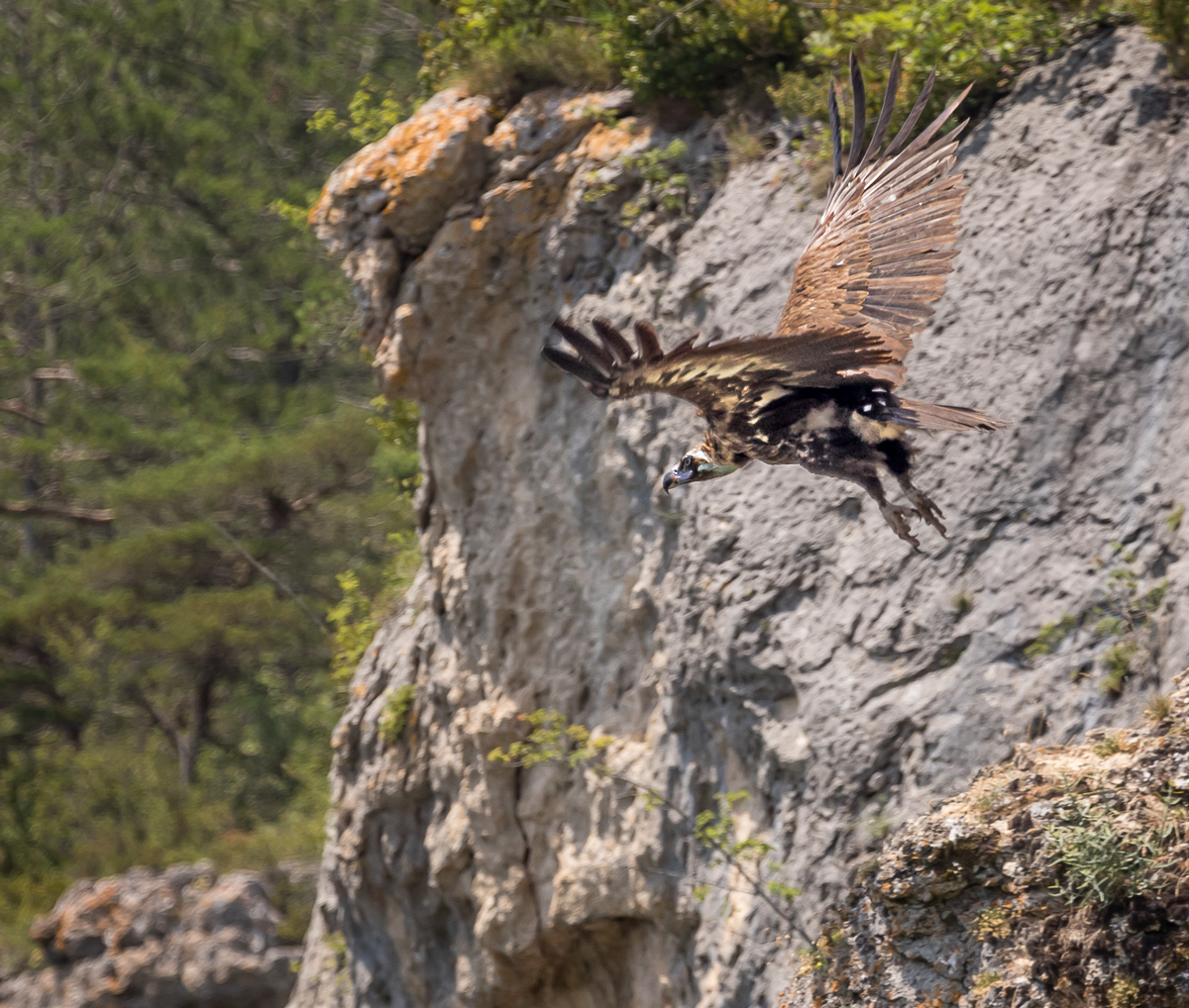Vautour moine dans les gorges de la Jonte