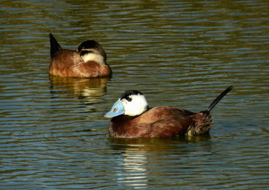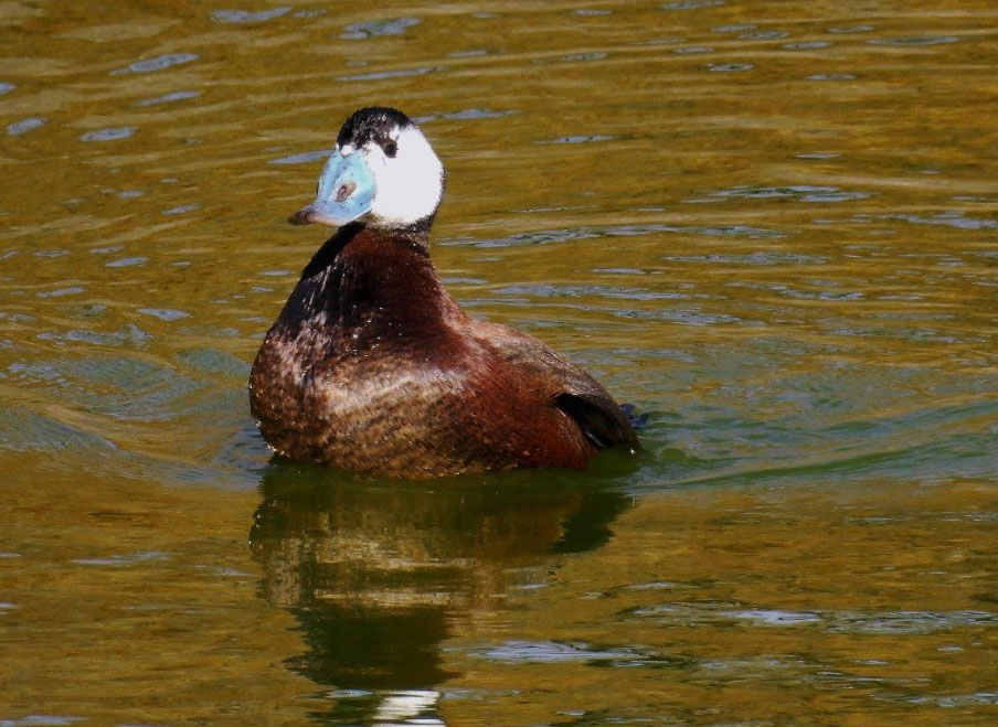 Sanlucar de Barrameda (province de Cadix). Un observatoire m'a permis de faire ces photos. Eu total,j'ai pu observer 6 individus. Lire Augmentation du nombre d'Érismatures à tête blanche espagnoles en 2012 et 2013.