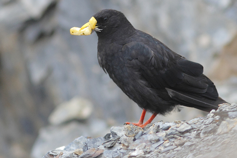 Photo prise le 13/08/2015. Un Chocard à bec jaune se nourrissait de frites, près d'un "restaurant-refuge" à 3 200 mètres d'altitude.