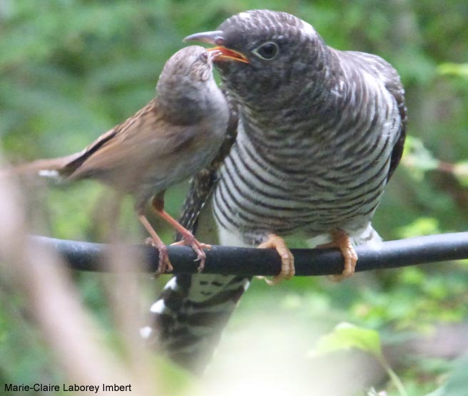 Jeune Coucou gris nourrit par un Accenteur mouchet