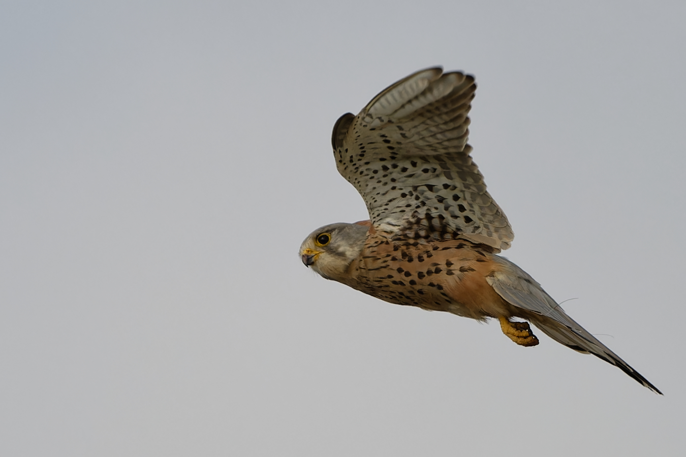 Photo prise le 28/05/2025. Vol stationnaire au dessus d'une proie face à un vent à 80 km/h.