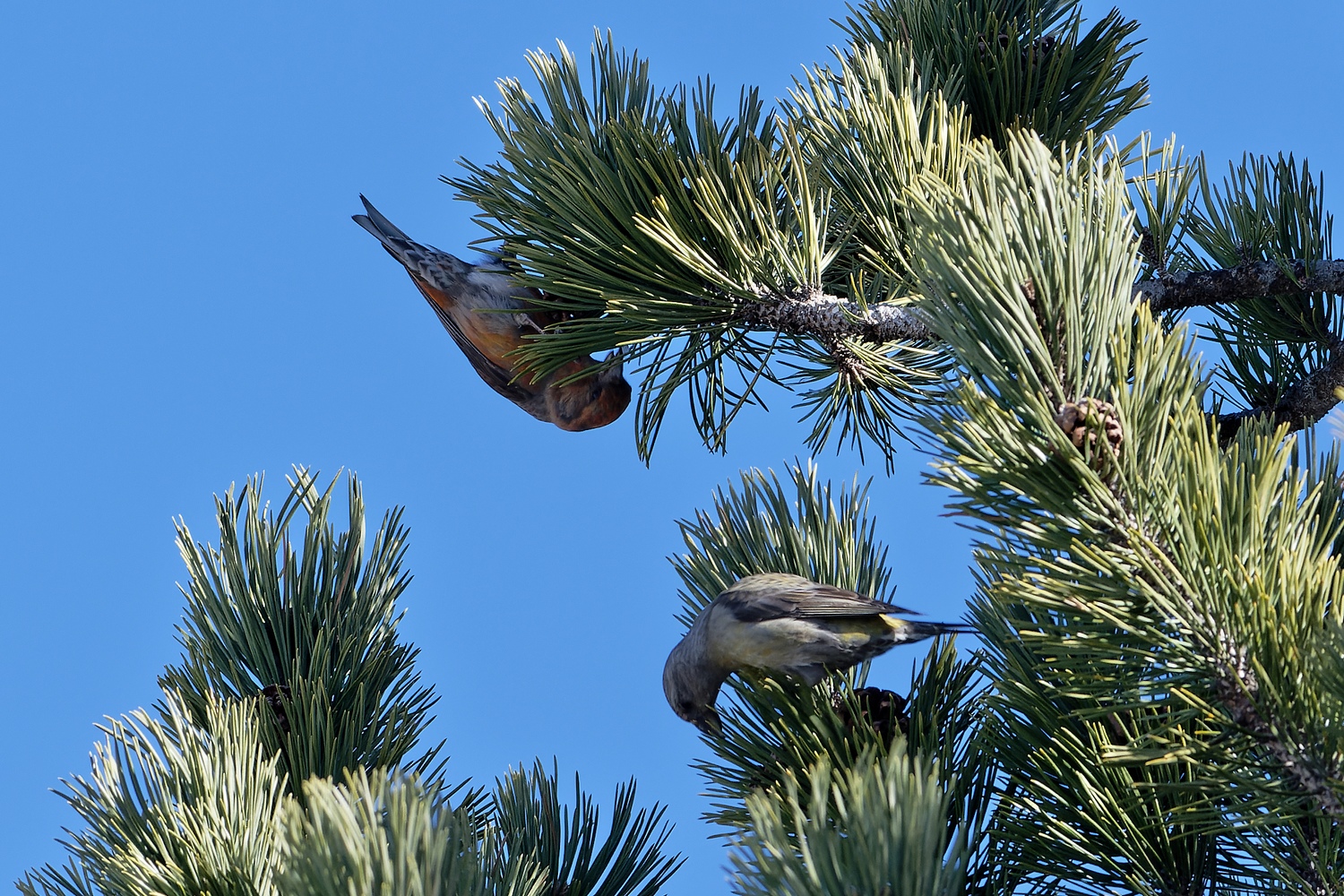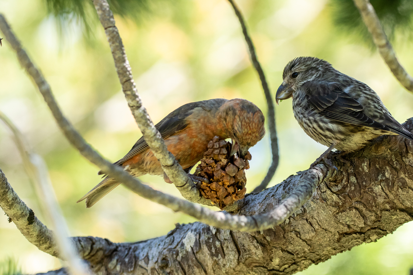 Becs-croisés des sapins mâle et femelle