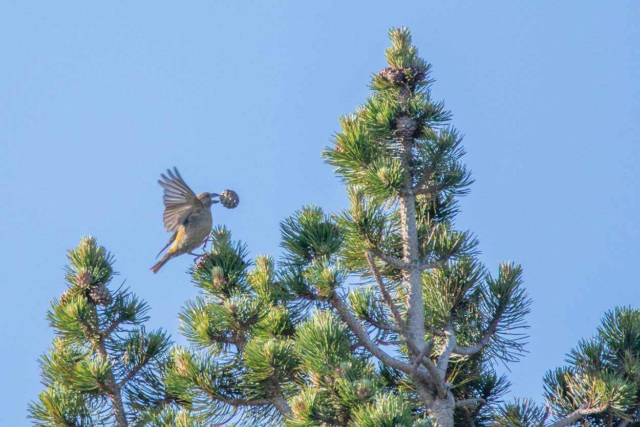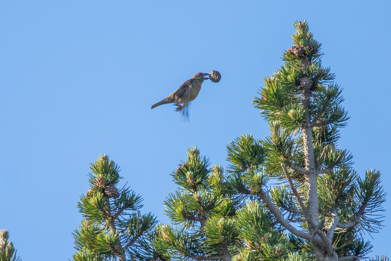 Bec-croisé des sapins se nourrissant