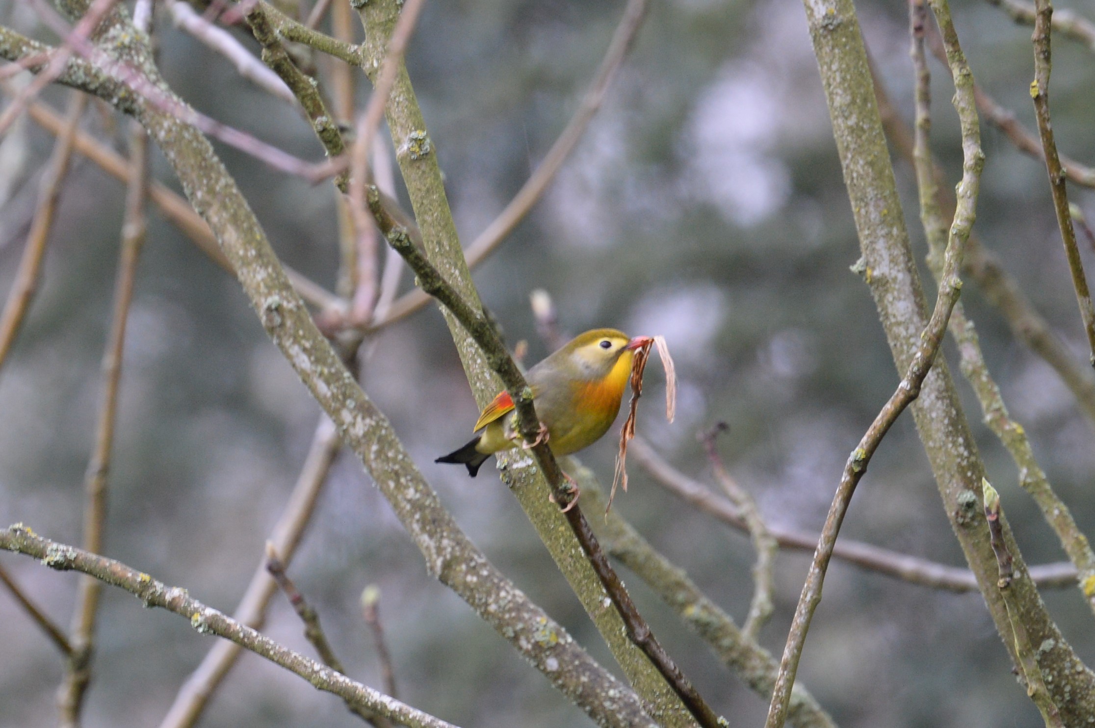 Photo prise en mars 2023 par Tahar Hammad. Lire Comment expliquer la progression du Léiothrix jaune en Europe ?.