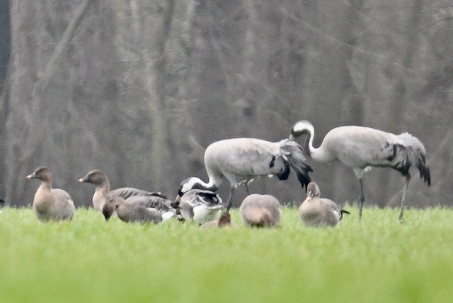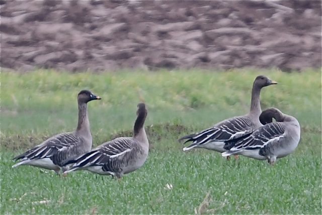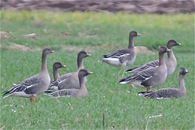 Photo prise le 23/01/2022 par François Huguet. Lire Les « fidèles » Oies des moissons de Cattenom (Moselle) et Distinguer les Oies cendrée, rieuse, des moissons de la taïga, de la toundra et à bec court.