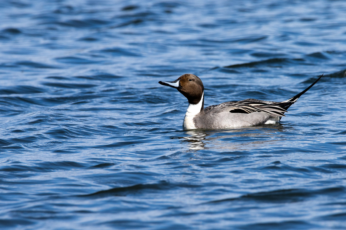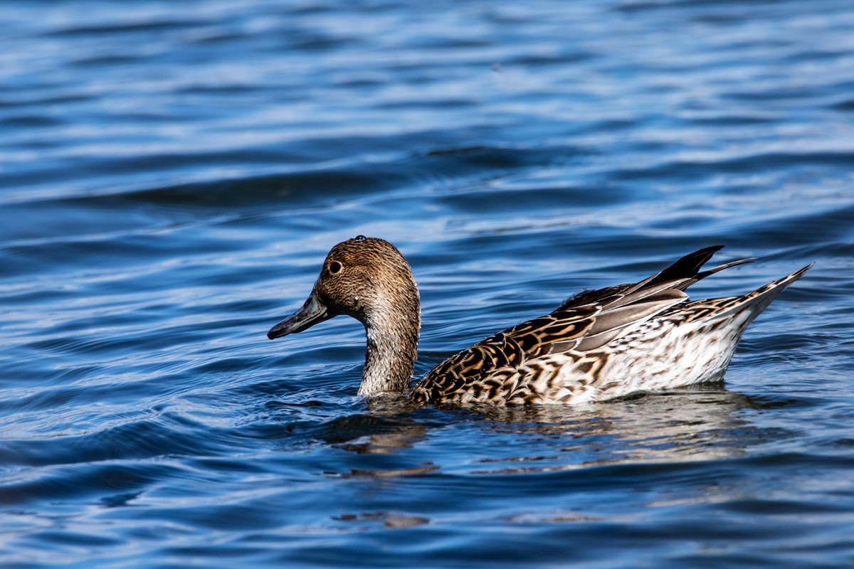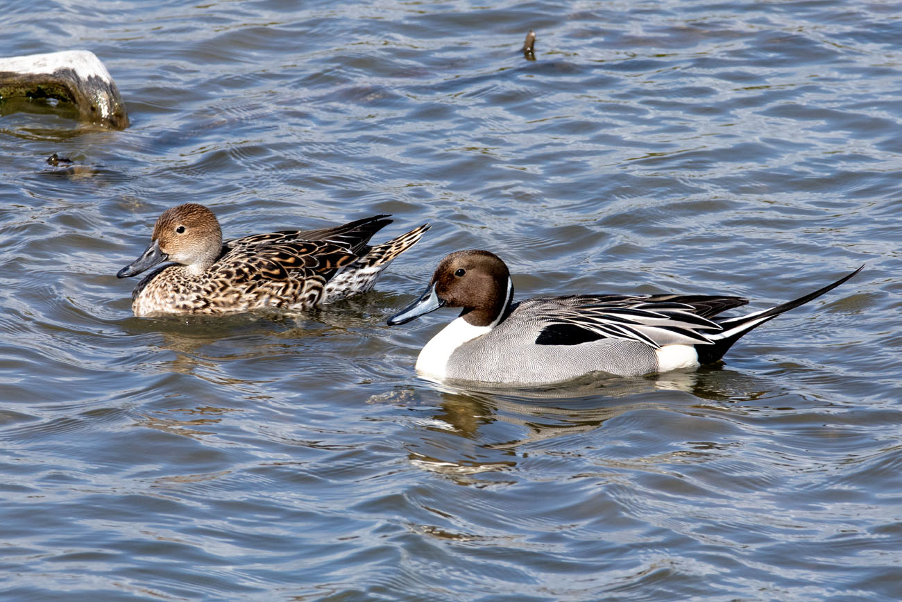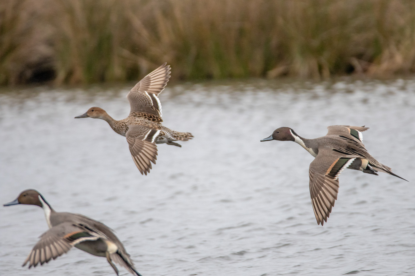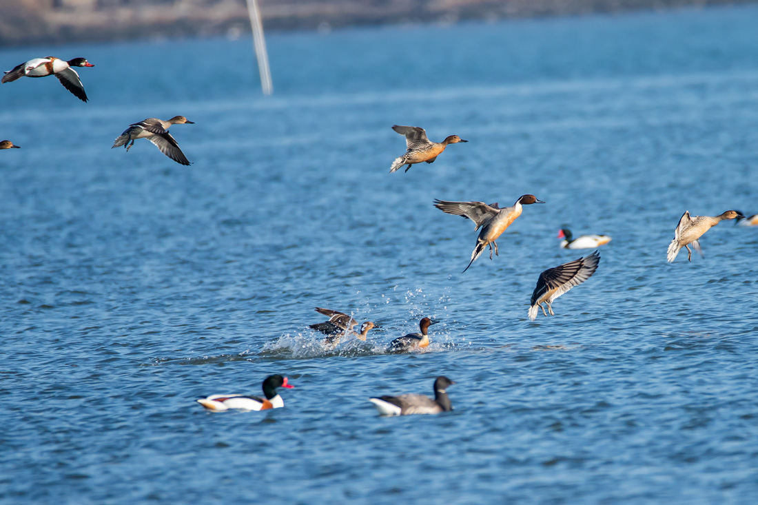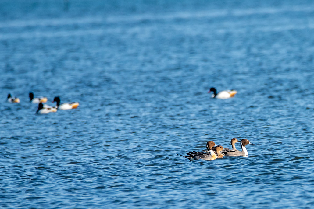 Photo prise le 27/02/2019. Notez le ventre ocre de certains oiseaux : leurs plumes auraient été colorées par l'oxyde de fer et l'alumine des eaux d'Afrique de l'Ouest, ou peut être par des micro-organismes en Europe. Lire Canards pilets au ventre ocre : ouvrez l'oeil !.