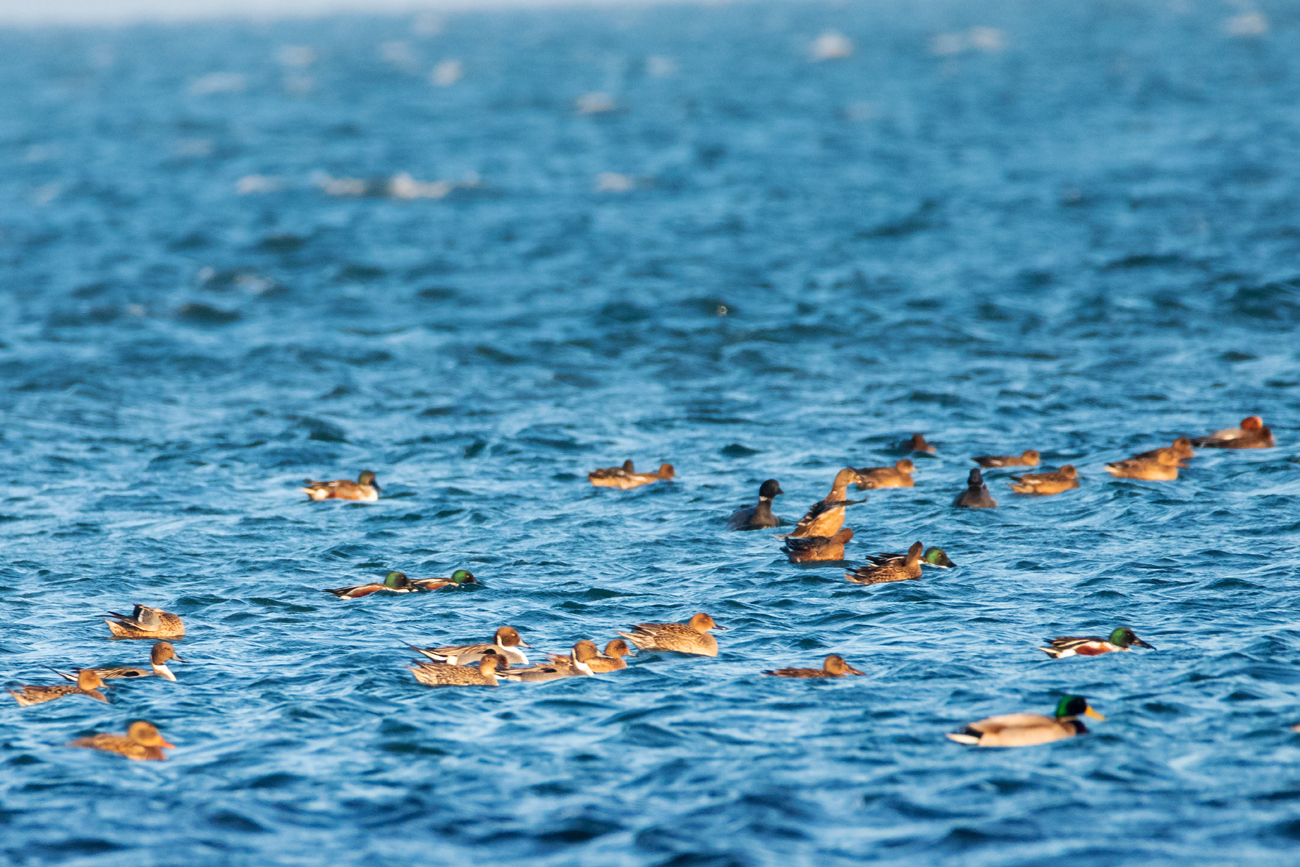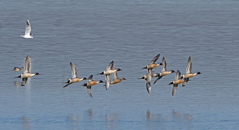 Photo prise fin décembre 2018. Notez le ventre ocre de certains oiseaux. Lire Canards pilets au ventre ocre : ouvrez l'oeil !.