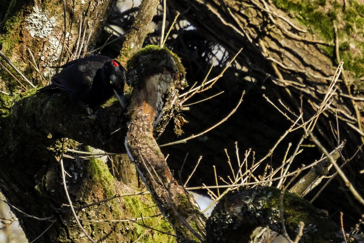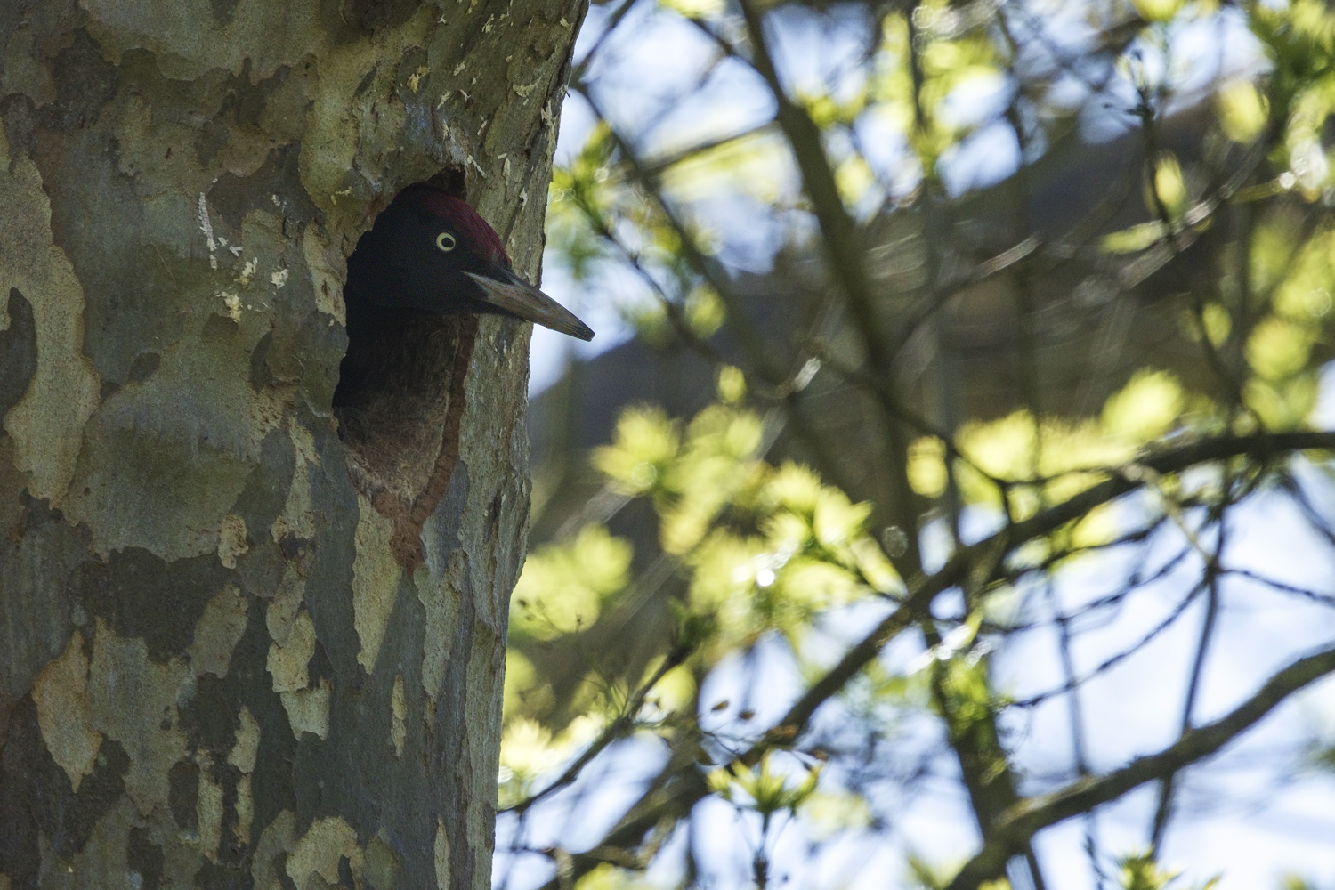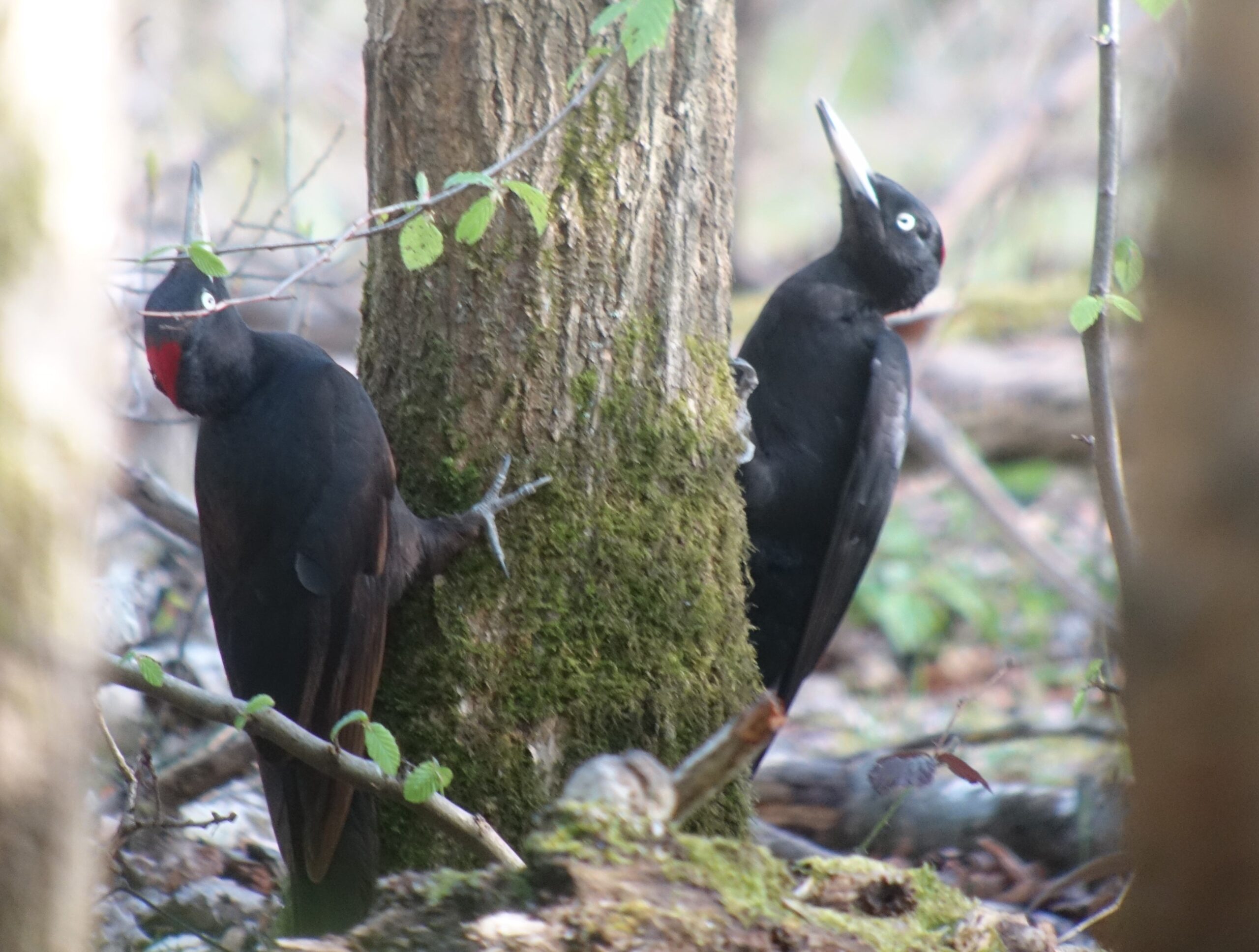 Photo prise le 16/04/2023. Deux femelles "jouant" à cache-cache de chaque côté d'un tronc et se chamaillant.