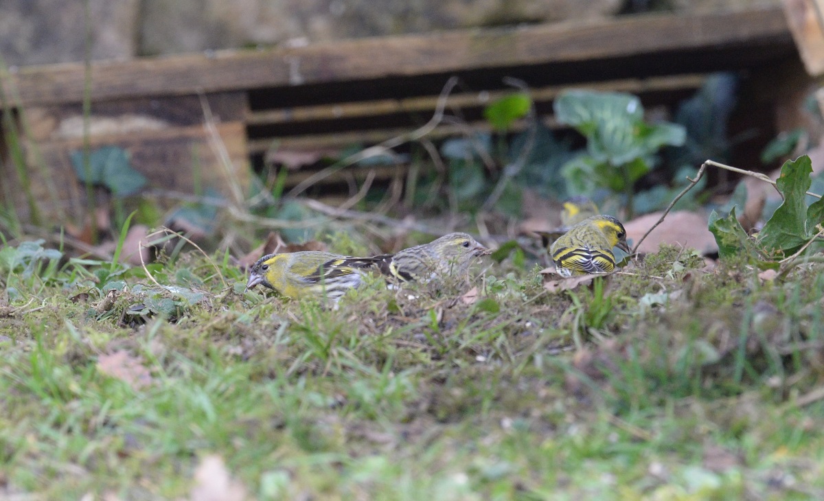 Photo prise le 12/02/2024. Retour des Tarins des aulnes après une longue absence, ce qui met un peu d'animation autour des mangeoires.