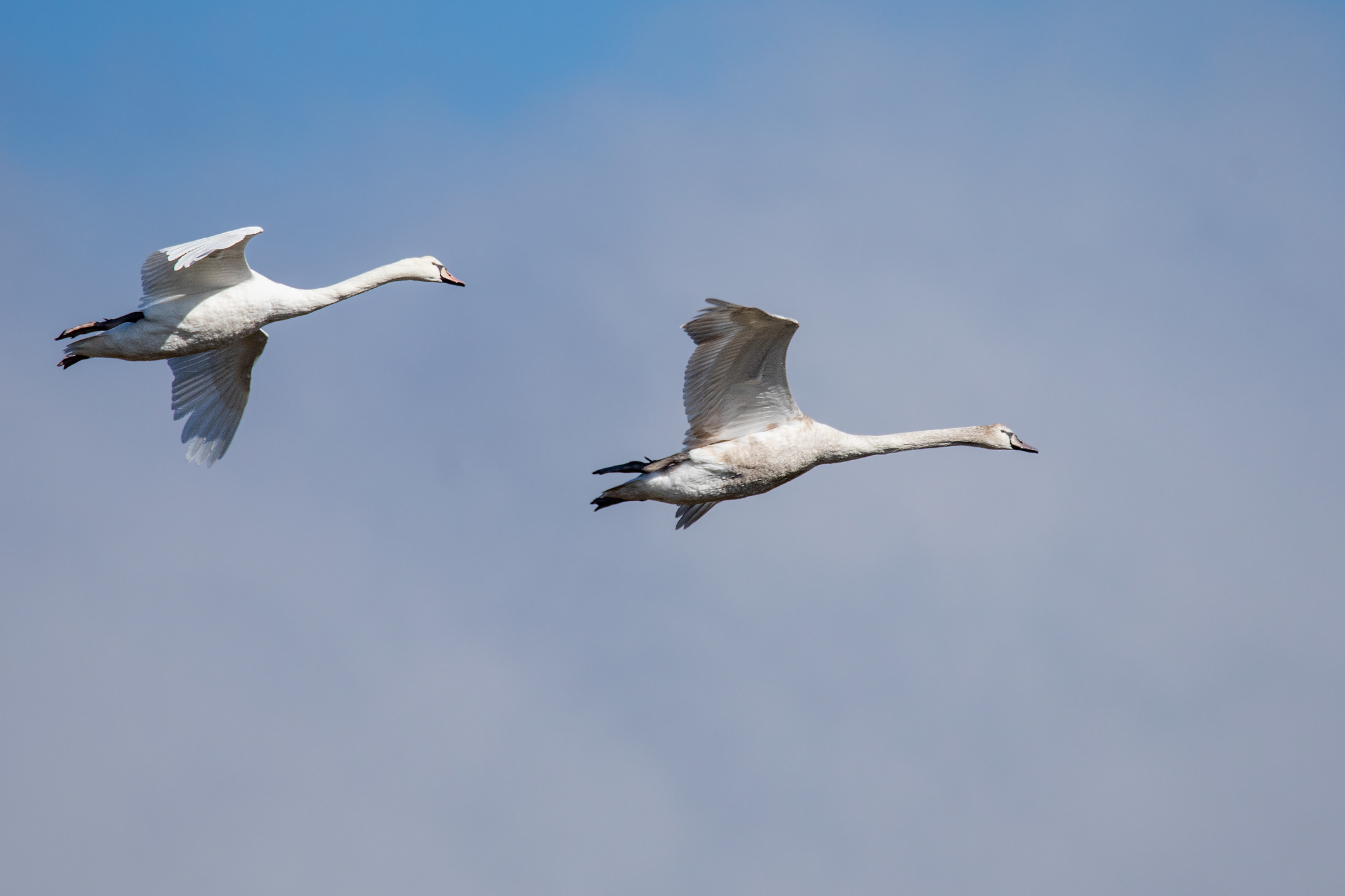 Cygnes tuberculés femelle et juvénile