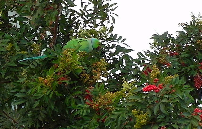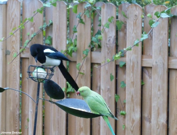 Photo prise le 29/12/2017. Cette perruche venait chaparder les tournesols des mésanges...
