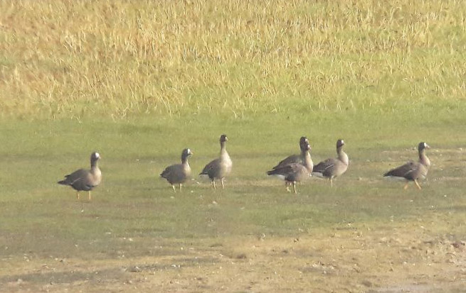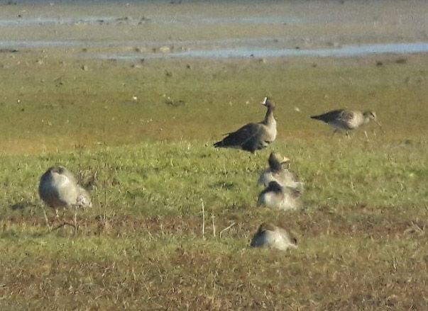 Photo prise le 28/12/2017. Groupe familial (2 adultes et 5 jeunes) découvert le 28/12. Lire Comment identifier l'Oie naine et où l'observer en Europe ?.